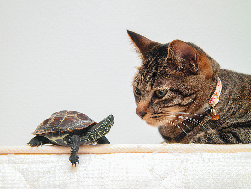 今回ご紹介するのは、福岡にいるクサガメの「軍曹くん」と、猫の「小雪ちゃん」。